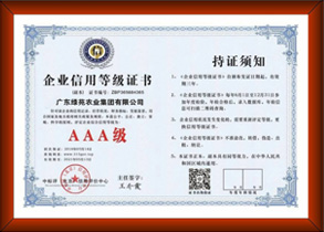 國家信用等級3A企業、東莞市農業龍頭企業